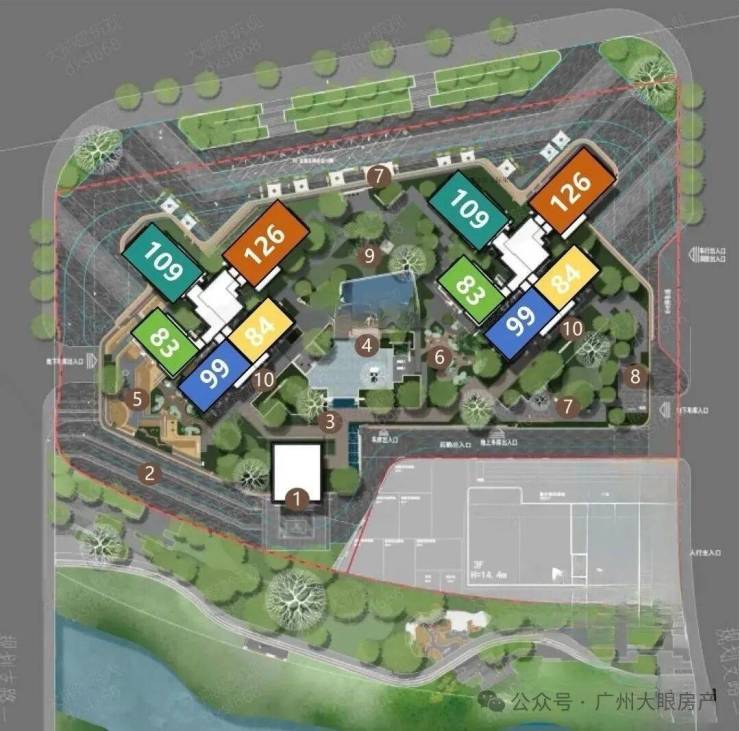 一共是4栋住宅建筑,层高在27-39层之间,靠近广云路的2栋高一点。