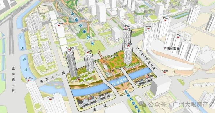将采用“水岸共生”理念,以白海面涌为生态主轴,构建滨水慢行廊道。同时沿嘉禾望岗上盖设施打造景观化中轴公园,塑造片区创意活力。(非项目配建,以政府官方公示为准)