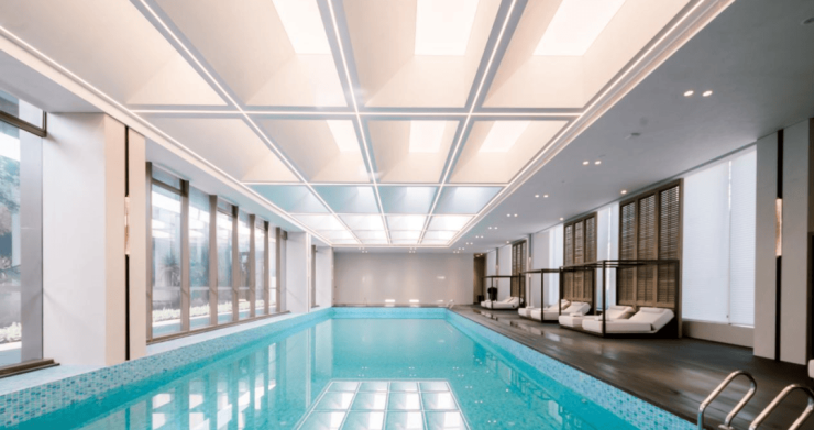 在功能空间配置上,规划酒店式室内恒温泳池,寒来暑往纵享度假的松弛;四大主题架空层像漂浮于园林之上的“第二客厅”,书香艺境内配备全龄段图书,是静谧阅读的知识港湾;悦心茶室里设置雅致茶席,为邻里品茗交流提供场所;活力聚场上配备轻运动设施,随时开启健康活力时光;童趣奇乐里为孩子打造专属室内游乐场,让孩子雨天也能尽情嬉戏。多样化的室内功能空间与户外空间无缝衔接,形成覆盖全年龄段的社区生活网络,回应当代家庭对自然与社交的所有想象。