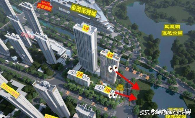 A3地块共规划为四栋楼,其中1号楼是人才公寓,号楼是高层,2、3号楼是洋房。即将首开的4号楼位于项目东北角,北边一路之隔是览秀城(在建),东侧和东北侧能看凤凰湖。