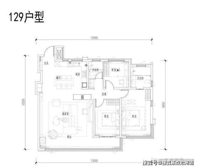 4号楼共33层,2梯4户,包含建面约107-129平房源,目前项目户型图已出,与之前A2地块户型图比较类似,不过项目对外宣称优化后得房率约90%-107%,高层得房率与之前的产品也差不多,高得房率是指2、3号楼洋房产品,勉强算是四代产品吧。