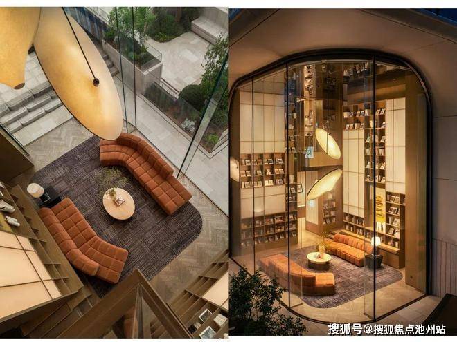 会所规模约1440㎡,一楼钟书阁式的转角书吧,苹果旗舰店的同款玻璃面。