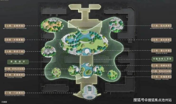 整体布局采用“有机的城市界面+礼序的中轴布局+流动的共享空间”为创新思考,打造独属于瑞府的礼序。