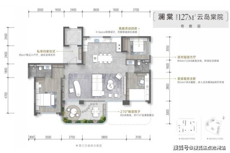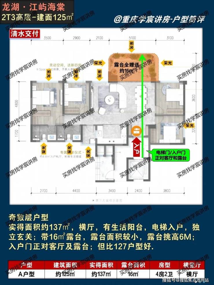 3️⃣建筑面积区间125-143m²;露台约16-21m²,6M挑空,图中有户型点评,127户型缺点多。