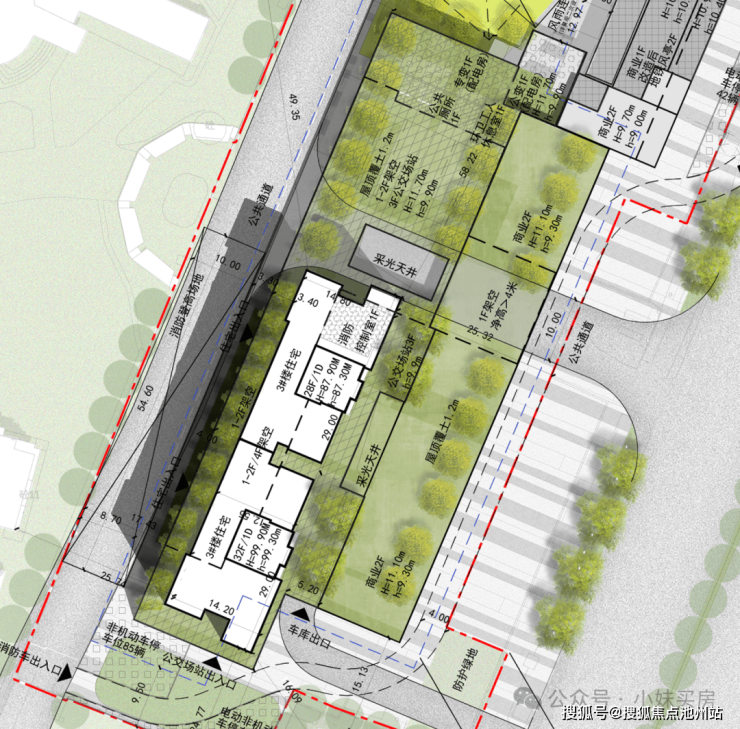 3号楼最为项目最南端,包含2个单元,总高分别是28层、32层,其中1-2F、4F均规划为架空层,3F则规划为公交场站。