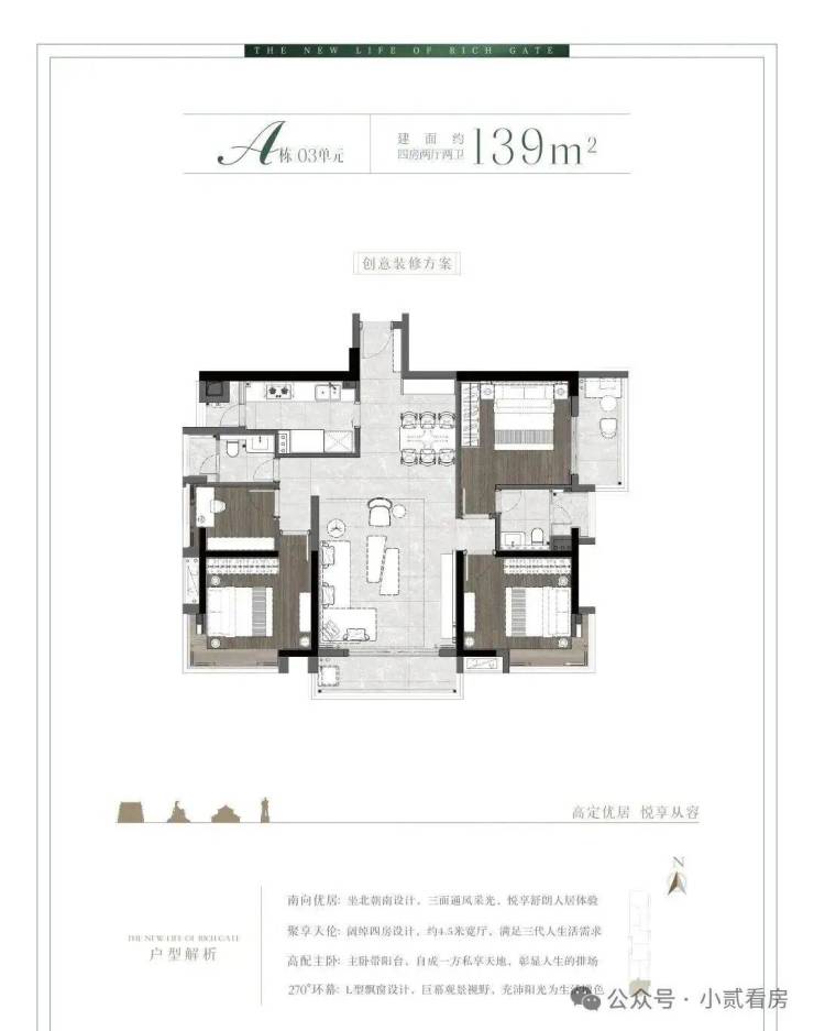 A栋03单元三面采光三阳台139㎡稀缺南向四房