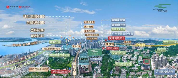 美林天地、山姆会员、宜家、盒马生鲜、鱼珠时光里等都会配套,还有规划中的开市客、华润万象系商业、文冲东和双沙大型商业MALL。