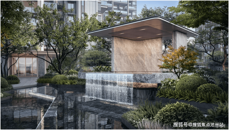 星瀑式下沉庭院,设计了立体山水叠瀑景观,构建都市生态之境。