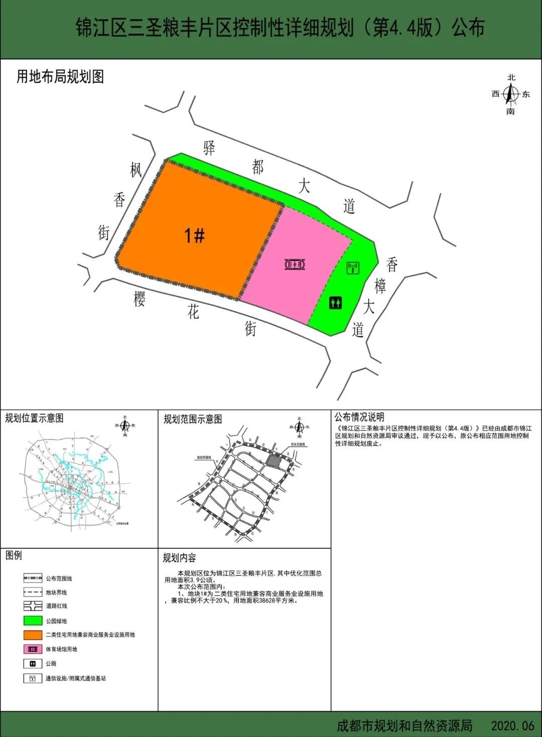 ● 在已经公布的锦江区三圣粮丰片区控制性详细规划(第4.4版)中,主要涉及锦江区三圣丰粮片区共计3.9公顷的土地规划。