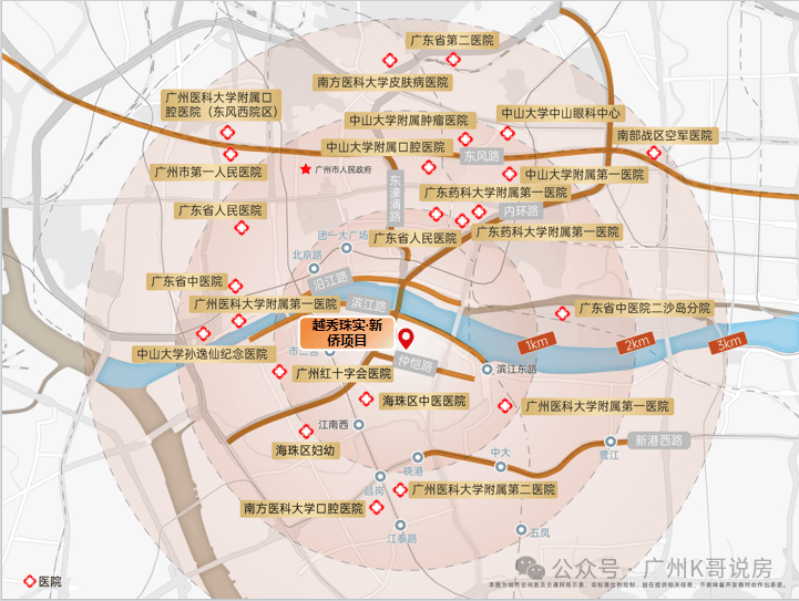 周边医疗:广医一院、二院,珠江医院,海珠区妇幼,广州市十字会医院等号称“五分钟生命线”的老城医疗保障。同时3km范围可速达海珠、越秀多个重点医疗配套。