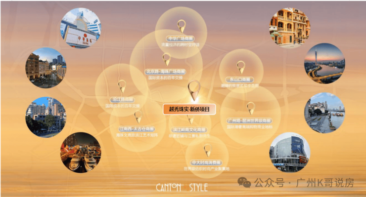 3KM范围内南有滨江岭南文化商圈、江南西-太古仓商圈、中大时尚消费商圈、广州塔-琶洲世界级商圈4大海珠商圈;