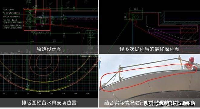 在钢丝网流水水幕工艺打造中,我们历经波折。起初深化甲方施工图,却发现无法达成预期效果。甲方原方案靠檐口外流水,可檐口视觉轻薄,且受水箱布置与原始施工图限制,难以满足视觉和出水要求。经与甲方、设计沟通,结合我们深化方案,设计新出图纸,(优化部分的内容)分供方同步实验新做法。