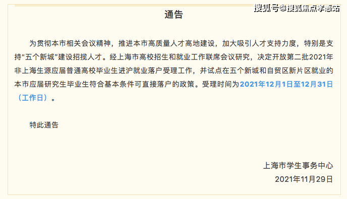 近日,上海市全面推进高质量人才高地建设,五个新城和自贸区新片区发布落户新政策,在这里就业的本市应届研究生毕业生,符合基本条件可直接落户。