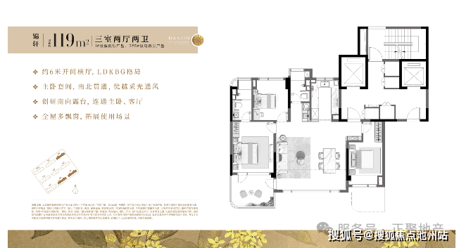 建面约119㎡、129㎡、139㎡、188㎡空中花园住区,约94%-112%高空间使用率,LDKB一体化设计,重塑空间想象。