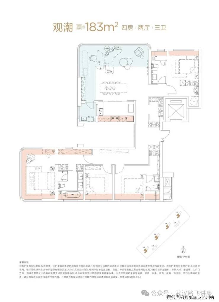 项目只有建面约143㎡和183㎡两个户型,是纯改善楼盘中的豪宅定位。
