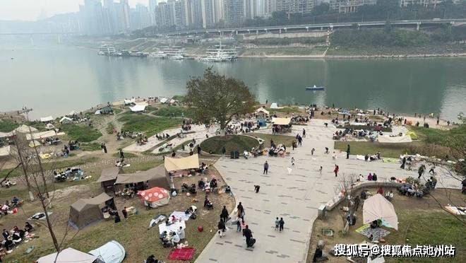 宽敞的北滨路上,到处是慢跑散步的休闲人群,江岸公园上到处都是露营休闲的人,甚至还有打麻将的,专属于山城的松弛感顿时便形象生动了起来。