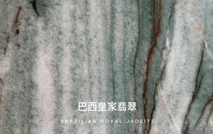 背景墙采用的是巴西皇家翡翠,地面则是白金沙与皇家翡翠的繁复石材拼接。