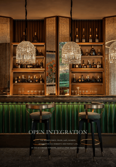 酒吧采用的是釉面珐琅,听着就有种老钱风的感觉。