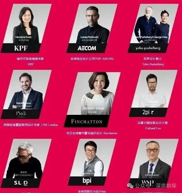 广州鹏瑞1号的落成由美国KPF(建筑设计)、AECOM(园林设计)、Yabu Pushelberg(室内设计)、梁志天设计、香港CCD事务所等深圳湾1号原班设计大师团队,还有“豪宅专家”英国1508 LONDON、英国FINCHATTON等大师一同参与。