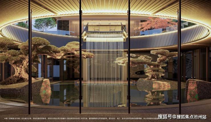 传承东方文化礼序,汲取《春江花月夜》与《四景山水图·春》等传世诗画名篇灵感,设计“三进门仪,园林九景”。一进高门大院,无雨迎宾;二进望湖水庭,游弋诗情;三进古树茶庭,漫步画境。同时融汇五庭四院,形成全围合式布局,呈现集诗意东方美学与当代人居审美、需求于一体的中式高端园境,真正做到“内得东方山水,外望大江大湖”。