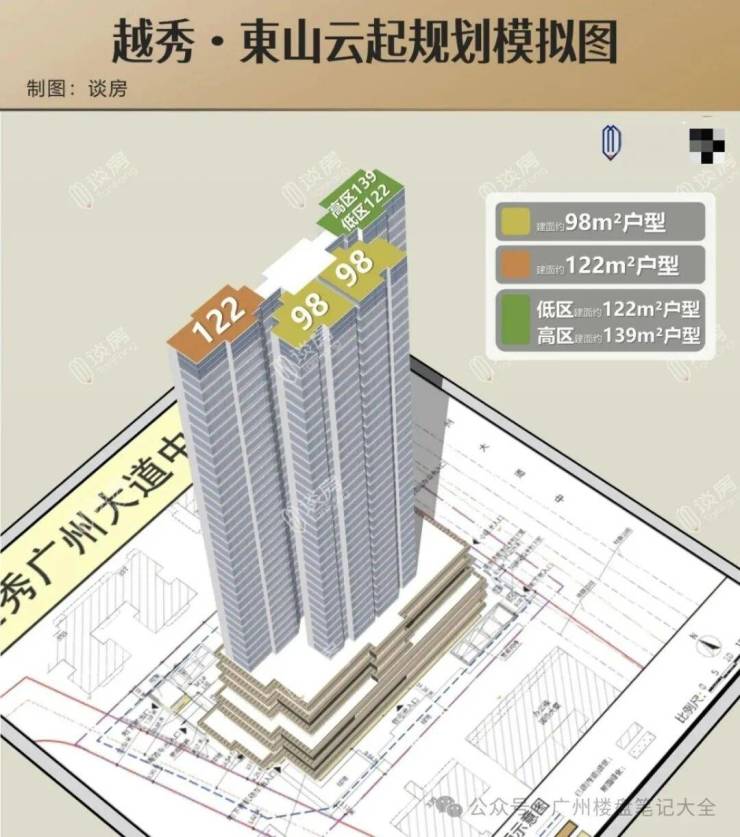 项目属于2024年“超新规地块”泛珠江新城片区内首个新规产品,户型使用率1X0%,目前在越秀,在售新盘几乎都是烂尾楼翻新,整个板块无新规,要么是20年老盘推新,产品早已定型。