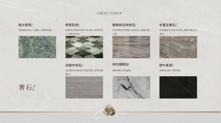 法国木纹石、影木、实木复合木地板及奢侈皮料等,以恰到好处的温度与柔和,为生活洒下一抹静谧。