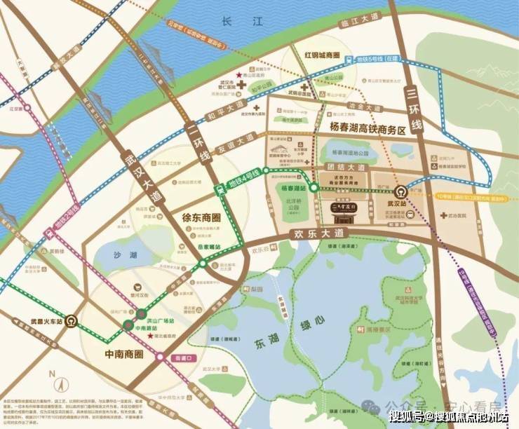地铁:项目下楼就是地铁4号线/10号线(规划中)杨春湖站,到站地铁5号线/19号线(规划中)/20号线(规划中)武汉火车站站直线距离也仅有约600多米。