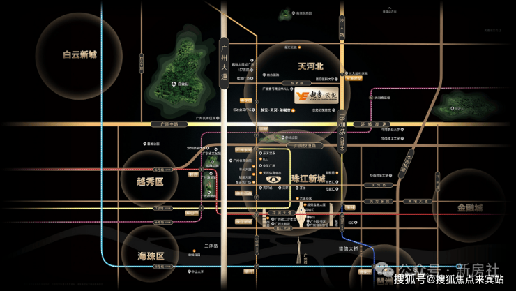 云悦二期算是一个双地铁项目。一来,家门口就是18号线京溪路站。未来业主,下楼乘坐18号线,就能一线直达琶洲(磨碟沙站)、珠江新城(冼村站)、天河北(广州东站),万博(南村万博站),根本不需要换乘。而步行约800-900米,就能到达3号线梅花园站。同样,乘坐地铁无需换乘,便能抵达体育西路、珠江新城。
