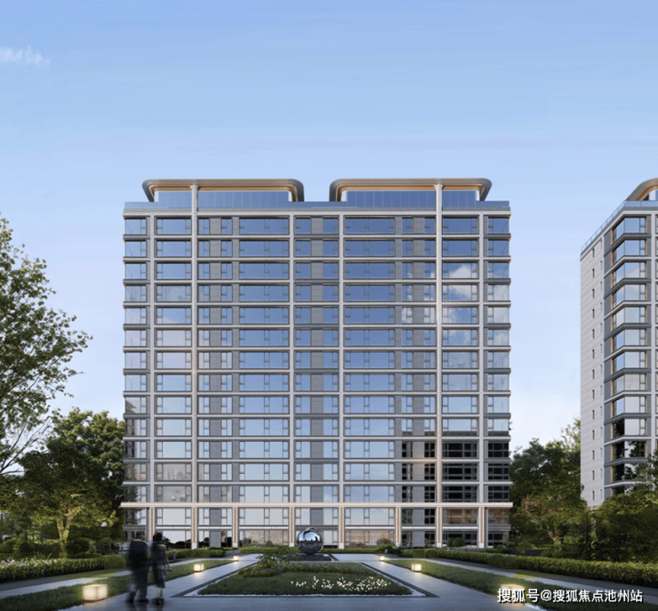项目立面采用多种型材,顶部采用香槟色铝板,竖向主造型为铝板材质,层间以大面材质为米白色水包水真石漆和灰色真石漆。基座框架部分为石材及香槟金铝板。不同材质之间完美过渡衔接,与大明湖遥相呼应,营造出“湖光浩渺涵天影,楼势峥嵘倚日华”的湖居意境。