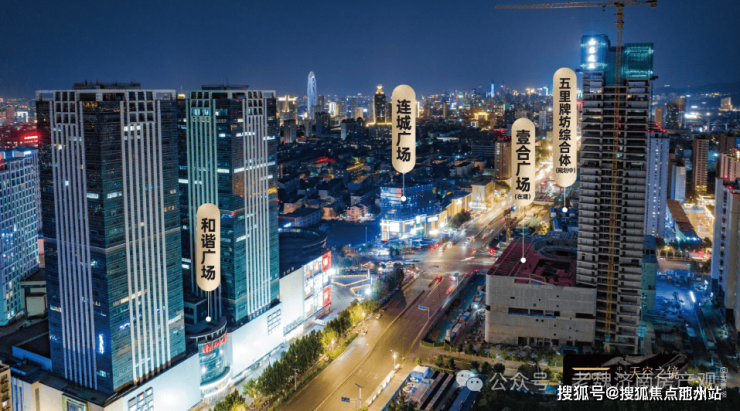 项目东侧约100米路口四角分布和谐广场、连城广场、壹合广场(在建)、五里牌坊商业综合体(规划);
