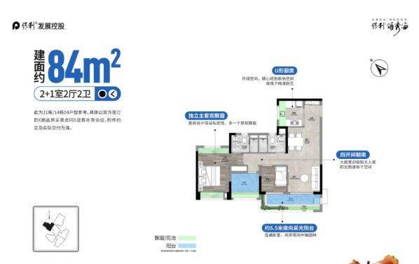 保利领秀海占地面积约14.7万㎡,规划21栋住宅,层高约19 - 33层,是规模较大的社区。项目以低密生活大城为定位,规划容积率仅2.55,主打滨海主题。预计首推1#、2#,产品涵盖建面约74 - 139㎡三至四房,总价125万起,为购房者提供多样选择。