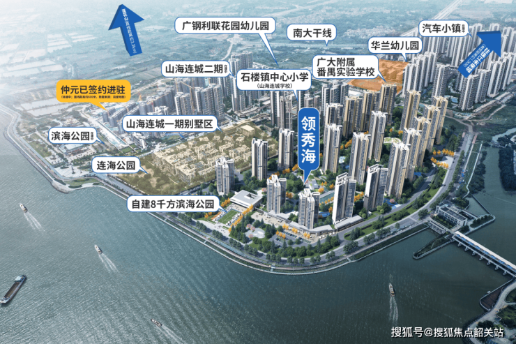 周边产业发展迅速,潜力巨大。莲花湾板块依托南大干线经济带及汽车城千亿产业集群。南大干线串联番禺莲花湾、国际创新城、万博、广州南站四大价值中心,经济带上已聚集世界500强希音,欢聚时代、携程华南总部等头部企业。汽车城以广汽乘用车、广汽埃安等整车制造企业为龙头,2022年产值超千亿,后期仍将投入大量专项资金及工业用地。产业扩张为区域带来全新增长点,与万博总部经济共同发展。而保利领秀海作为板块内素质最好、位置核心且一线临海的住宅项目,将优先享受产业发展红利。