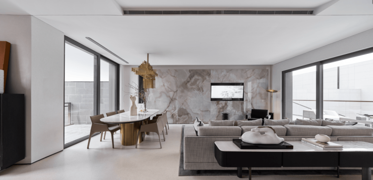 一楼一体化客餐厅,更罕见性做到对流,南北双面落地玻璃铺开,舒朗开阔。