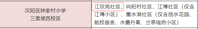 汉阳区向来是以社区为划片依据,根据2024年划片文件显示,境湖玥所在地块属于的江欣苑社区对口钟家村小学三里坡西校区和墨水湖中学。