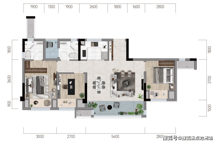 阔绰楼间距/约13.9米奢阔面宽/约5.4米美学横厅/配置独立书房/得房率约95.22%