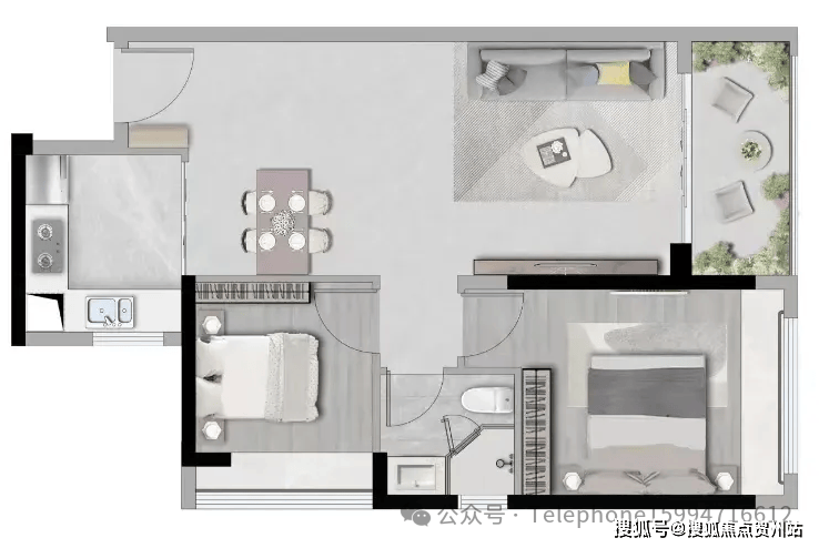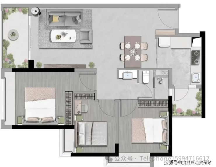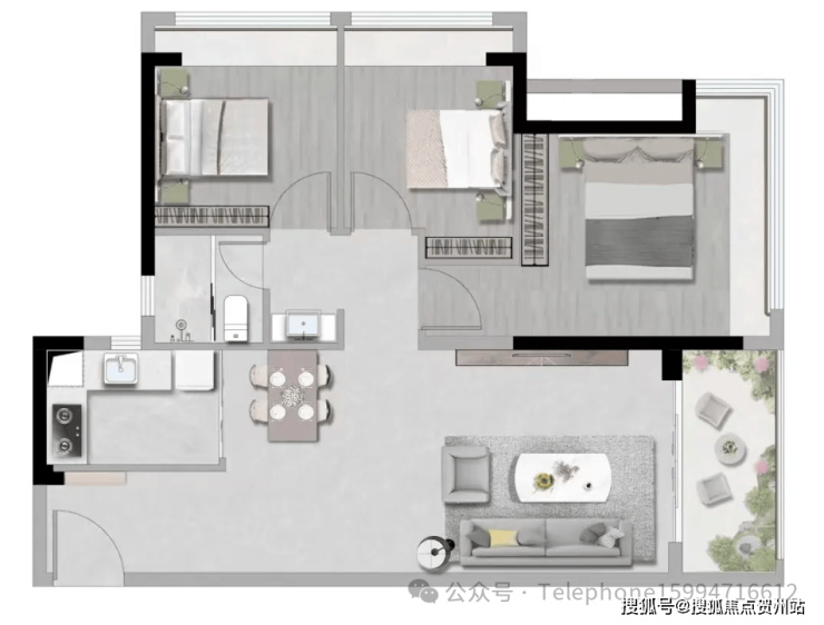 72㎡两房户型,高实用空间,动静分区科学布局;