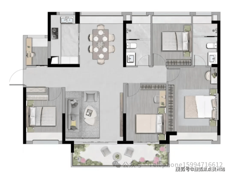 140㎡四+1房户型,央景C位,南北通透,全明空间。