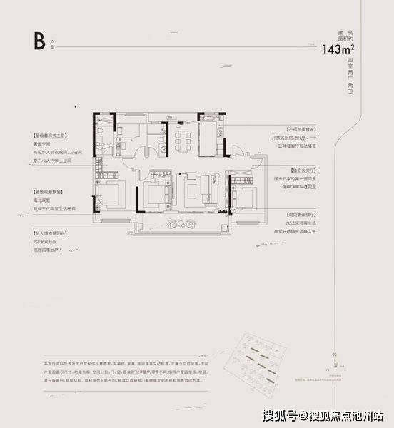项目主推的143㎡四房户型,是开发商精心雕琢的杰作,它将空间利用率与居住舒适度进行了完美的融合。该户型采用四室两厅两卫的设计,无论是二胎家庭还是三代同堂的大家庭,都能在这里轻松找到属于自己的舒适空间,满足多样化的居住需求。户型整体方正通透,南北双阳台的设计更是一大亮点。充足的阳光可以毫无阻碍地洒进家中的每一个角落,清新的清风也能自由穿梭,让室内始终保持空气清新、明亮宜人。主卧采用套房设计,配备了独立的卫浴和步入式衣帽间。在这里,主人可以尽情享受私密而尊崇的生活体验,仿佛拥有了一个专属的私人空间。次卧的空间设计灵动多变,你可以根据家庭的实际需求,将其改造成温馨的书房、充满童趣的儿童房或者娱乐室,为生活增添更多的可能性和乐趣。