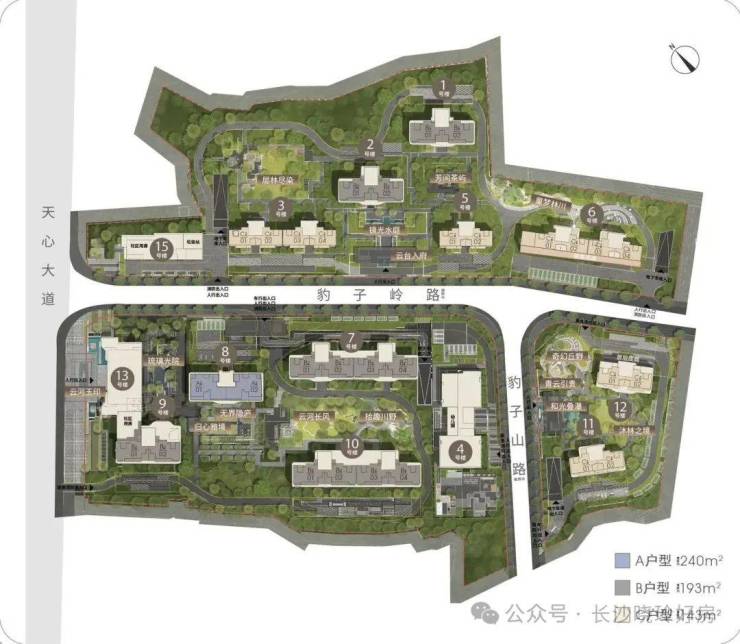 ②区域内拥有 5 大市政公园,是主城区市政公园落地密度最高,园林维护最好的区域。项目往东即可到达海棠公园,西侧一路之隔是天心滨江公园,让您于闹中取静,享受城市绿洲的超脱感。