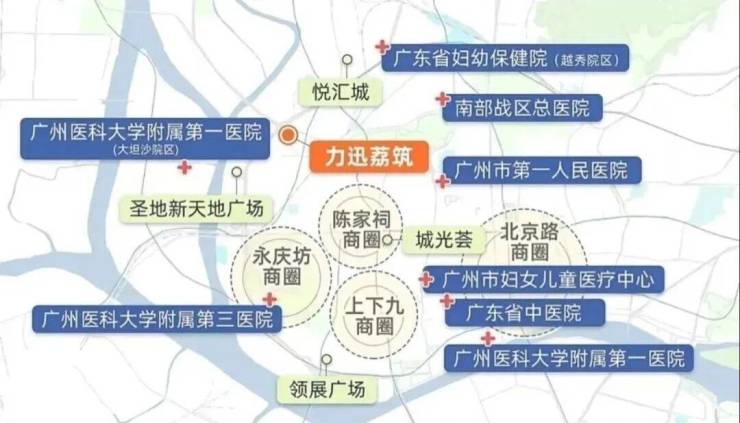 项目3公里范围内广州市第一人民医院、广州医科大学附属第一医院、广东省妇幼保健院越秀院区、南部战区总医院、广州医科大学附属第三医院、广州市妇女医疗中心、广东省中医院等。