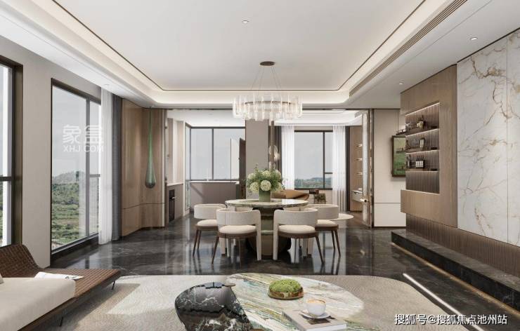 全部公建化外立面,南向全封窗,清一色大玻璃窗+金属线条+明亮色调,整盘台地式布局,地库也有自然采光和通风。