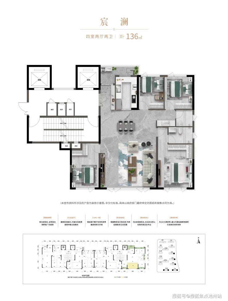 中欣澜庭序主推新规负公摊产品,共有建面110-120-134-136-139㎡五种户型选择,得房率均超100%,具体户型图如下: