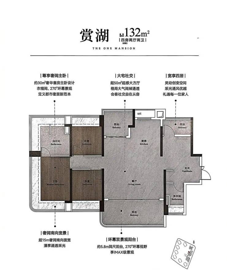 ▫️132-148㎡楼王户型:270°弧形玻璃幕墙,金山湖景尽收眼底!