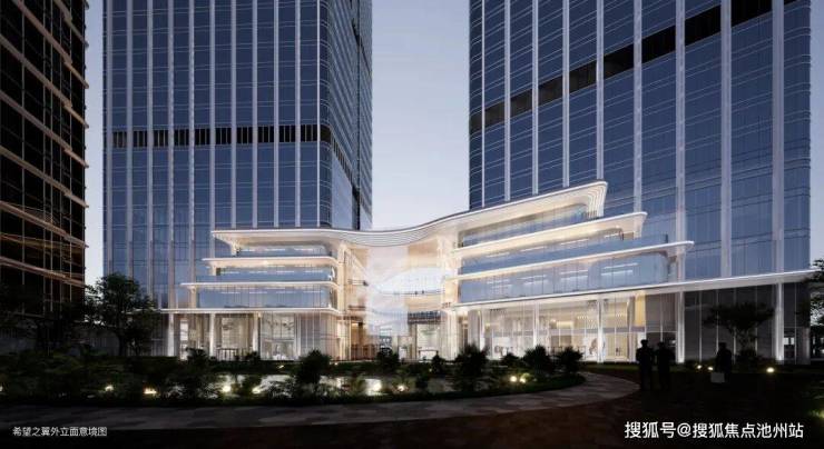 华中首个360°无背立面幕墙,以大面宽弧形玻璃实现环幕江景。