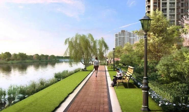 滨水公园:沿河打造约1.6km滨水漫步公园(在建中)、体育运动公园等自然公共空间,营造运动、娱乐、休闲等松弛感生活聚场。