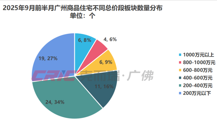 在套均价上,克而瑞数据监测显示,9月前半月(截至15日)广州总价200-400万元板块数量最多,共有24个,成交主力来自市桥板块,600-1000万元板块数量较上月增长3个,成交主力来自汉溪万博板块。