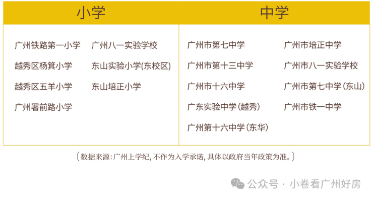 项目本身所在的越秀东山,也是广州名校遍布的片区,对口的杨箕小学,也已纳入铁一教育集团。2024年越秀招生划分范围,杨箕小学在第五分组,未来有机会进入省实、铁一、七中、16中等强校。