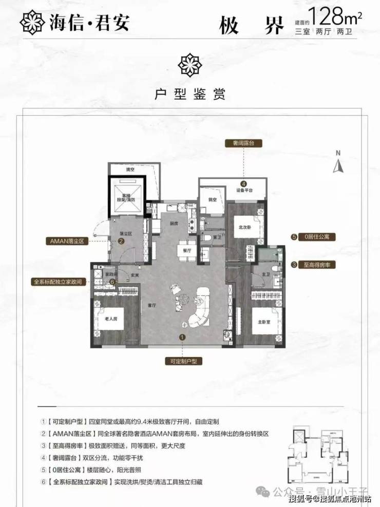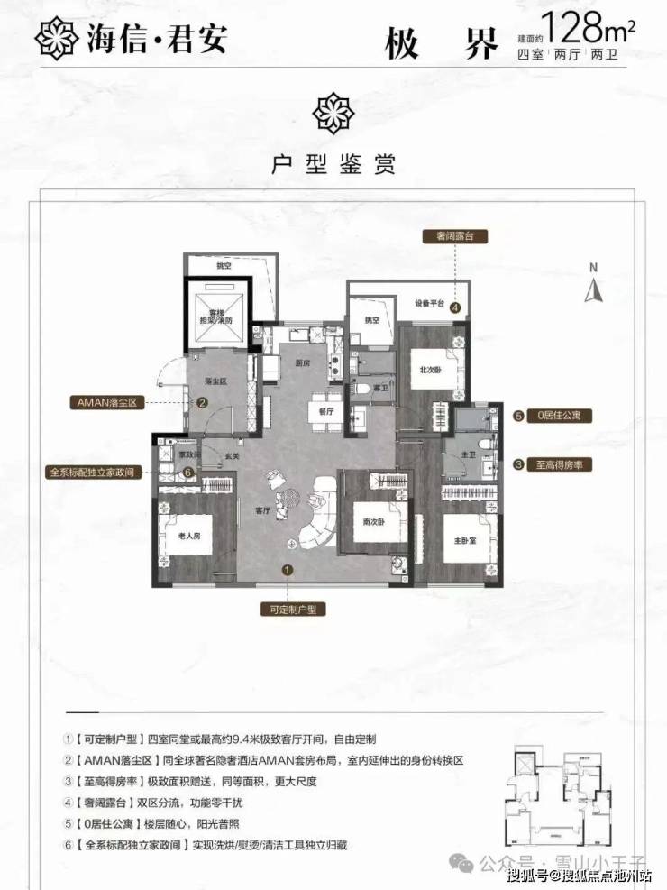 143平四室(户型是最主流的四面宽,赠送的面积和128㎡户型一样,电梯厅,北侧设备平台和飘窗三个位置)