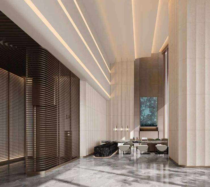 7米挑高大堂,豪宅标配公区全石材