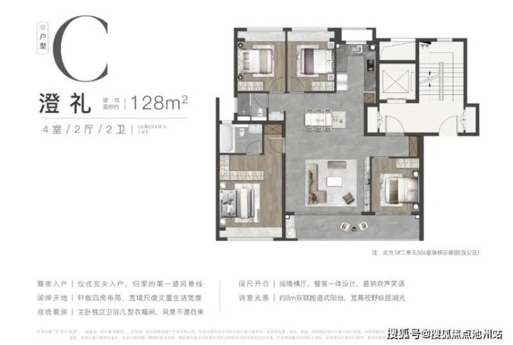 128㎡四房:5米横厅+双联阳台,以“泛会所式客厅”重构家庭社交场景。